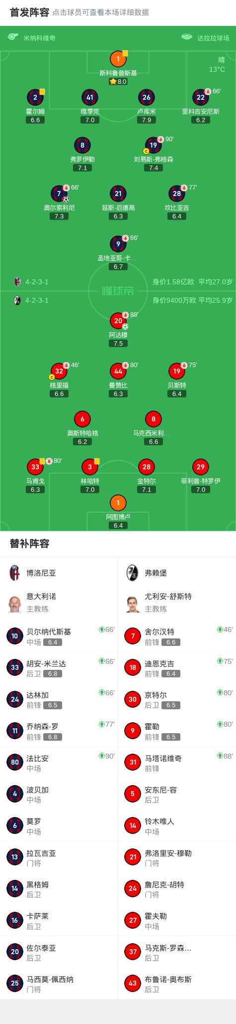 第29分钟,打破僵局,奥尔索利尼门前补射破门,博洛尼亚1-0