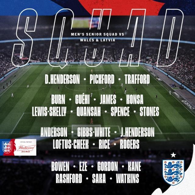 从曼联外租至巴萨的拉什福德连续入选,而在发挥出色的福登和格里利什再次落选。上期入选的马杜埃凯和利夫拉门托本月因伤缺席,刚刚伤愈的贝林厄姆也未入选。